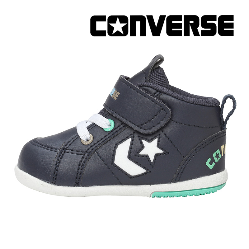 (検索用キーワード) コンバース CONVERSE ベビー スニーカー ファーストシューズ 子供靴 ミニ インチスター ネイビー/ミント ミッドカット 靴