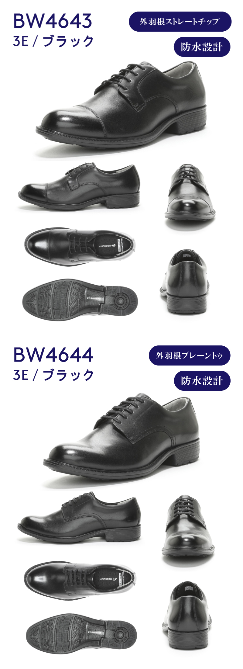 ムーンスター バランスワークス 透湿防水 本革 幅広 3E 軽量 メンズ ビジネスシューズ ブラック 甲高 革靴 靴 黒 甲高 就活 冠婚葬祭 moonstar BALANCE WORKS