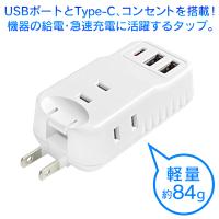 電源タップ USB充電付 USB×2 コンセント×3 Type-C×1 急速充電 スマホ 充電 usb コンセント 折りたたみプラグ ACアダプター 送料無料 100K◇ LBR-AC190B