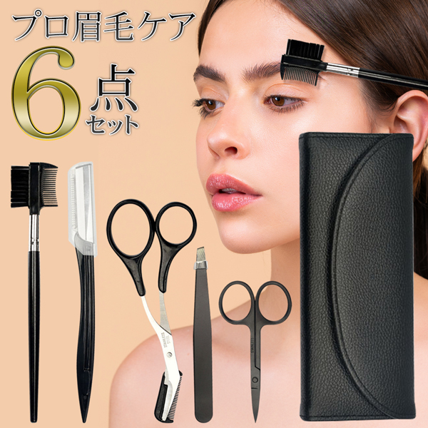 送料無料 眉毛ケアセット 眉毛用 ハサミ くし付き 毛抜き カミソリ ケース付 6点セット まゆげ 眉毛カット 美容 3M◇ 眉毛ケアプロセット
