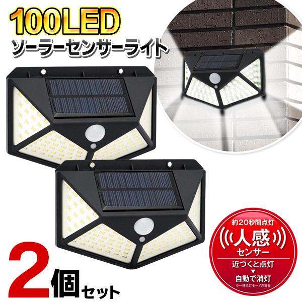 センサーライト 屋外 LED100球 2個セット 人感 防水 自動点灯 ソーラーライト 玄関 ポーチ 防犯 照明 節電 エコ 節約 /60N◇ 100LEDライト×2個