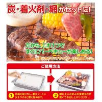 炭・着火剤・網がセットになって面倒な準備も、後片付けも不要。だれでも簡単にバーべーキューが楽しめるインスタントBBQセットです。