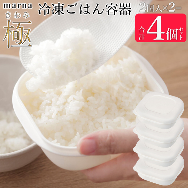 マーナ 極 冷凍ごはん容器 4個セット 炊き立て そのまま 電子レンジ 食洗機対応 冷凍ご飯容器 一膳分 4個入り 送料無料- 60N◇ 2個入冷凍ごはん容器2セット
