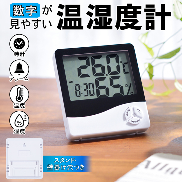 送料無料 送込 送料込 温湿度計 湿度計 デジタル表示 小さめ 時計 アラーム 目覚まし時計 健康管理 乾燥対策 赤ちゃん ベビー 健康管理 温湿度管理 体調管理 簡単設定 寝室 体調管理 感染対策