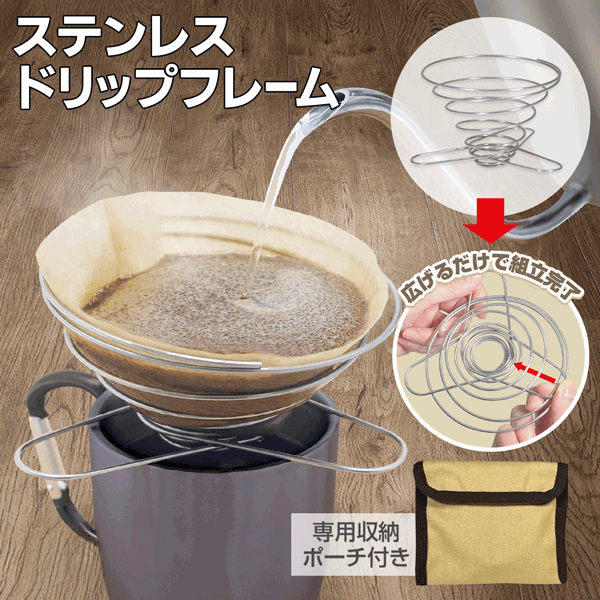 コーヒードリッパー ステンレス ワイヤー 折りたたみ フレーム 収納袋付き ハンドドリップ おしゃれ アウトドア キャンプ コンパクト /60N◇ ドリップフレーム