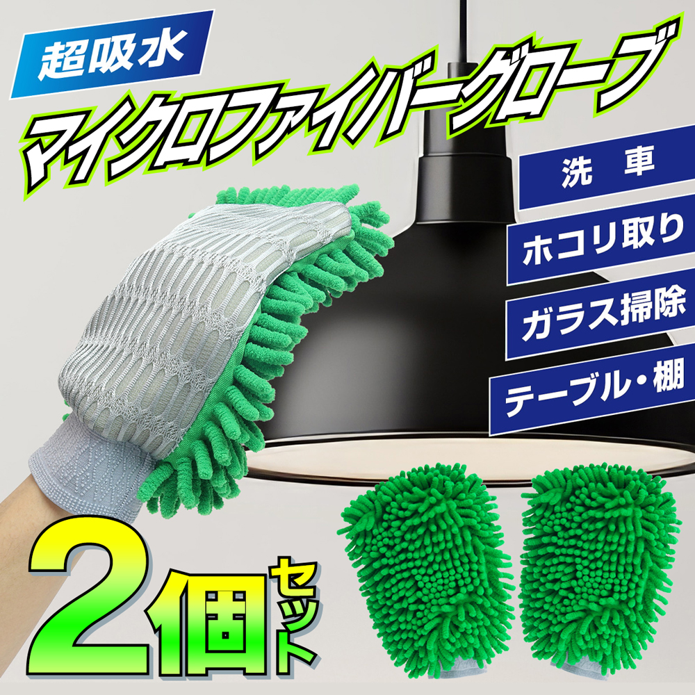 洗車 グローブ 2個 セット 洗車グッズ マイクロファイバー 繰り返し洗える 車 ボディ 自動車 吸水 窓ガラス 掃除 ほこり 両手 送料無料 7M◇ ミット型モップ