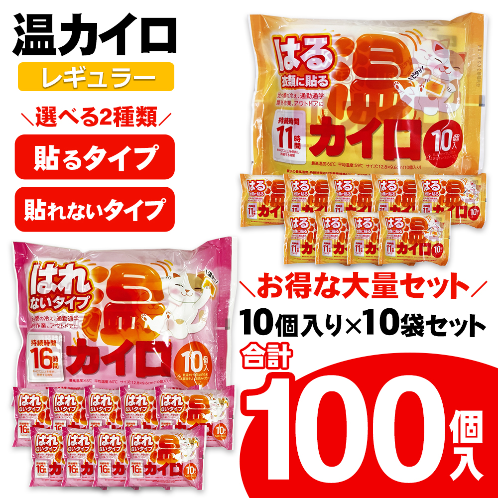 【長時間暖かい】貼る 貼らない カイロ 100枚 貼るカイロ 貼らないカイロ 使い捨て 寒さ対策 防寒 貼れない 安い 送料無料- 60N◇ 温カイロレギュラー