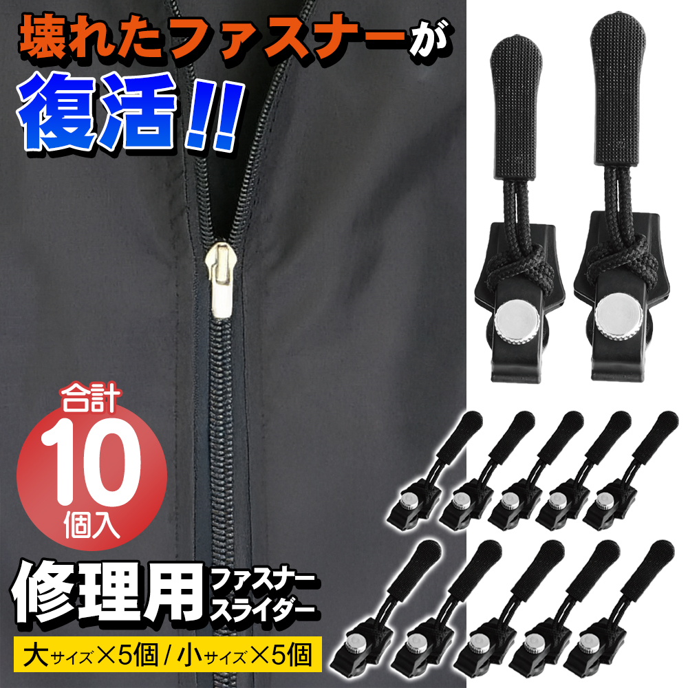 ファスナー ジッパー修理 大小×各5個 合計10個セット ブラック ジッパープル 取れたフック 補修 ネジ式交換 パーツ ジャケット 送料無料 3M◇ 修理用ファスナー