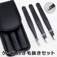送料無料 毛抜き 3本セット ピンセット 毛ぬき 角栓 ステンレス製 専用ケース付き メンズ レディース 眉毛抜き 産毛 ムダ毛 2M◇ ケース付き毛抜きセット