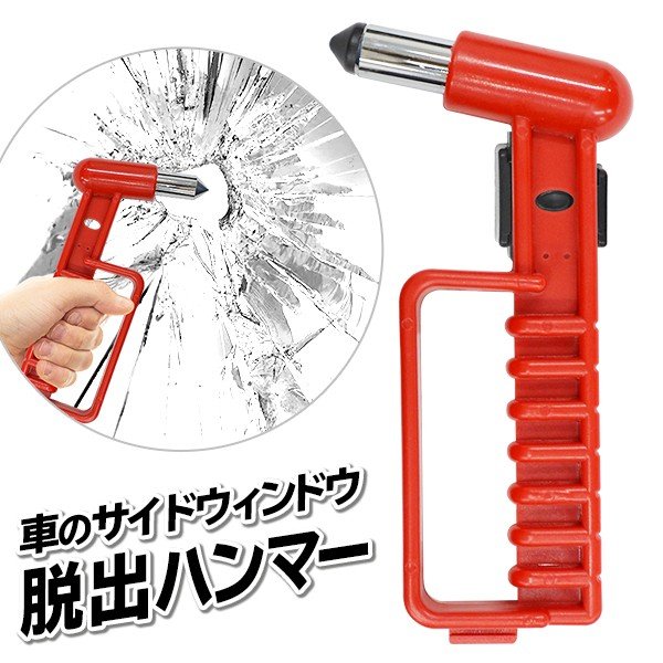 レスキューハンマー 車 緊急脱出 救出用 ガラス割り 収納ホルダー付 金槌 車載 豪雨 台風 浸水 災害 防災 カー用品 送料無料 3M◇ 脱出ハンマー赤