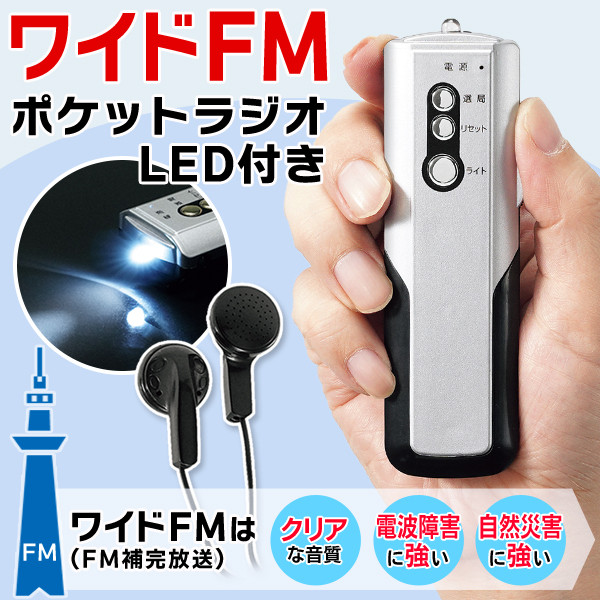 ポケットラジオ AM/FM ワイドFM AM受信 LEDライト付 両耳イヤホン付 コンパクト 高感度 高音質 防災グッズ 自動選局 観戦 防災 /60N◇ ラジオSTI