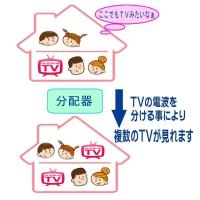 ご家庭内の複数の箇所へテレビ放送の信号を分配。