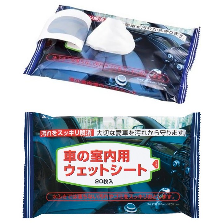 車の室内用ウエットシート 大判 30×20cm 20枚入 日本製 汚れスッキリ拭き取り お掃除グッズ クリーナー クロス /60N◇ 車内用ウェットシート
