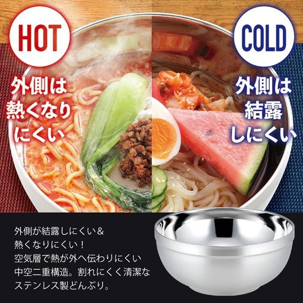 どんぶり ステンレス製 保温 保冷 二重構造 ボウル 結露予防 持っても熱くない 食器 アウトドア 衝撃強い キッチン 冷麺 //60N◇ ステンレスどんぶり