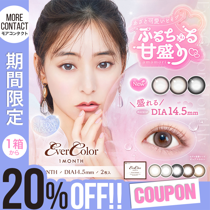 【20%OFFクーポン】カラコン 1ヶ月 エバーカラー マンスリー 1箱2枚入 Ever Color 1month シリコン素材 度あり 度付き 新木優子 ワンマンス