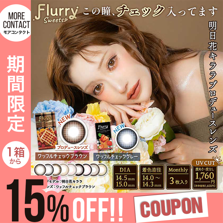新色発売【15%OFFクーポン】カラコン フルーリー マンスリー 1ヶ月 1箱3枚入 明日花キララ Flurry 1month 度あり 度なし ワンマンス