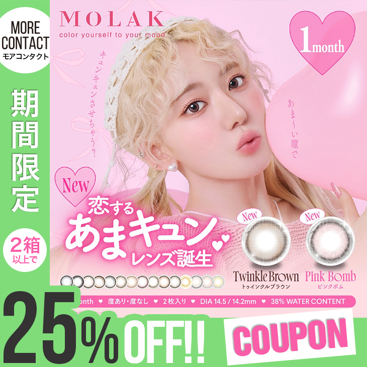 【2箱以上で25%OFFクーポン】カラコン 1ヶ月 モラク マンスリー 1箱2枚入 MOLAK 1month ワンマンス 度あり 度付き 宮脇咲良 monthly 水光