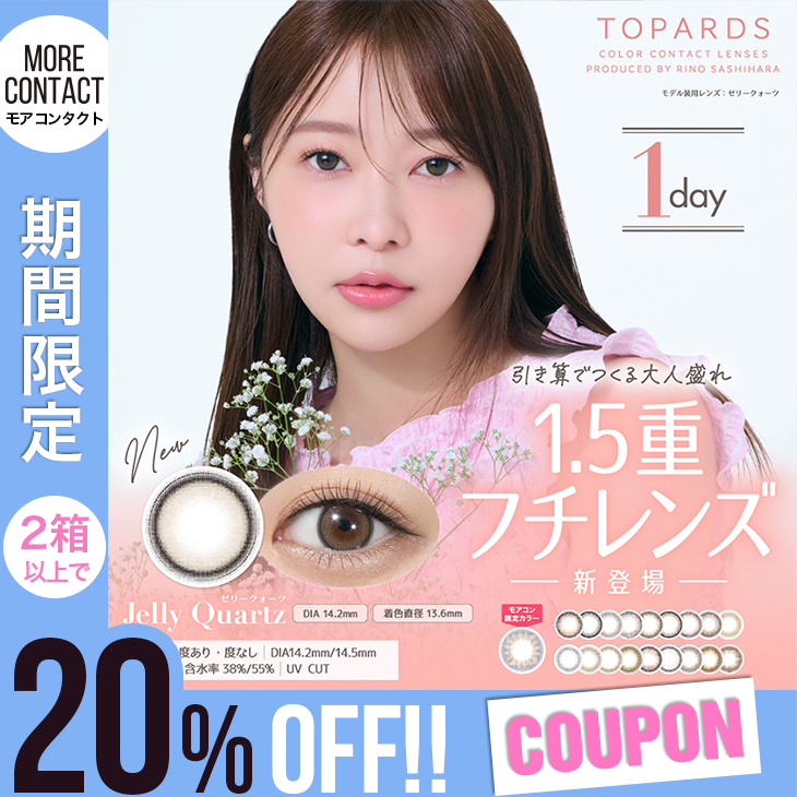 新色発売【モアコン限定カラーあり!2箱以上で20%OFFクーポン】カラコン トパーズ ワンデー 10枚入 TOPARDS 1day 度あり 度付き 指原莉乃 さっしー