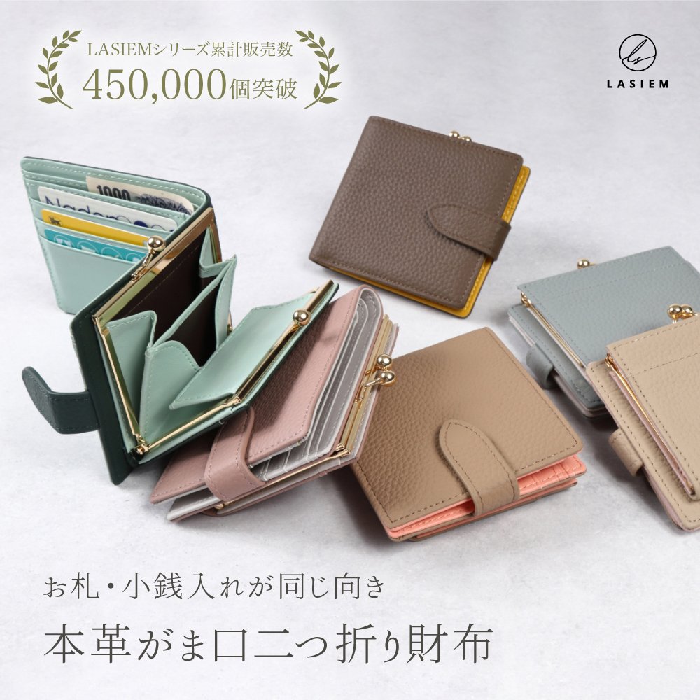 二つ折り財布 本革 レディース がま口財布 ブランド 使いやすい財布 小さい バイカラー 30代 40代 50代 ラシエム