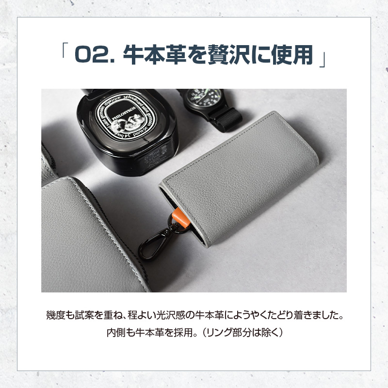 幾度も試案を重ね、程よい光沢感の牛本革にたどり着きました。