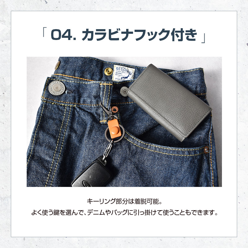 5つのキーフックとカラビナ付きのキーホルダーで鍵をたっぷり収納。