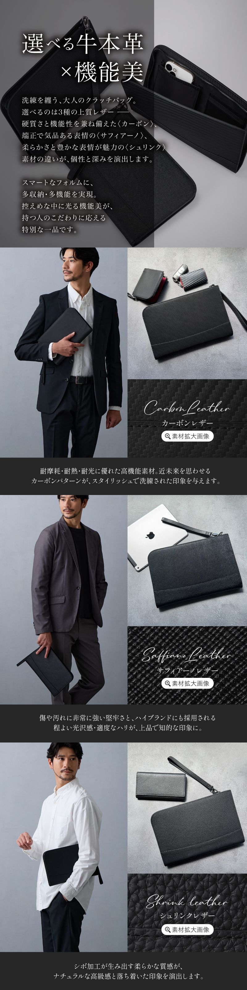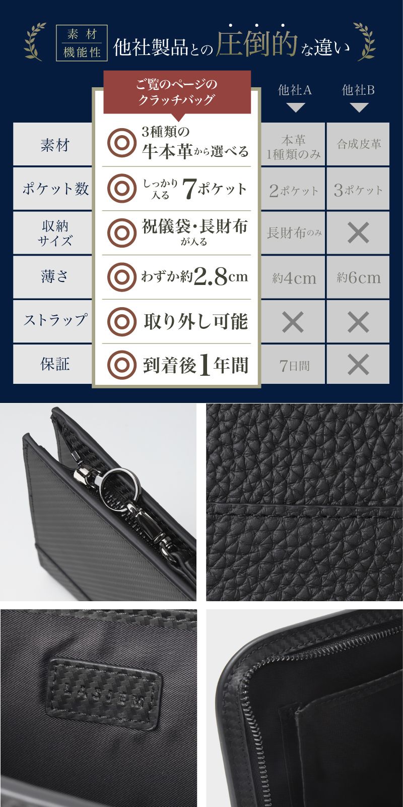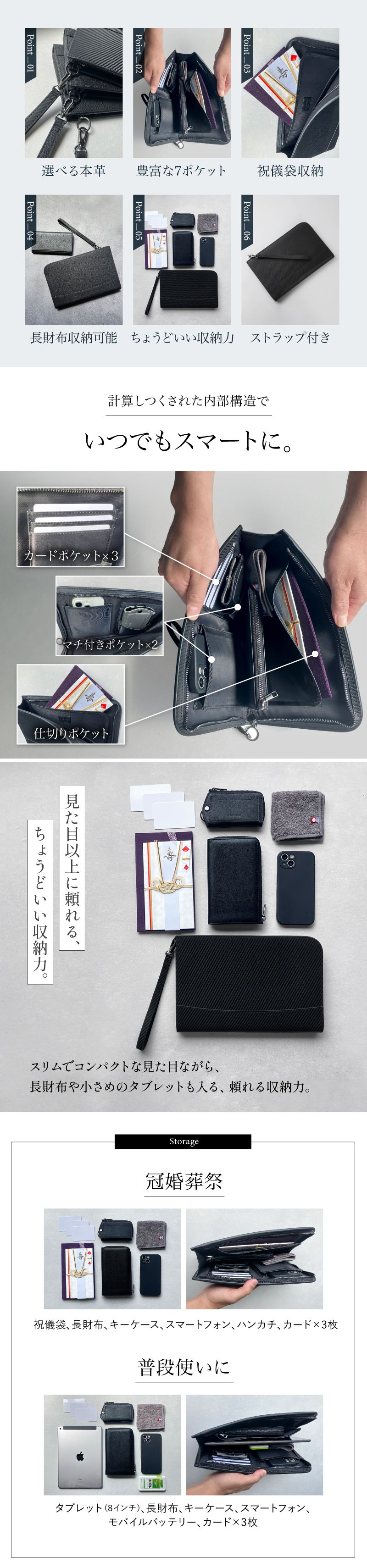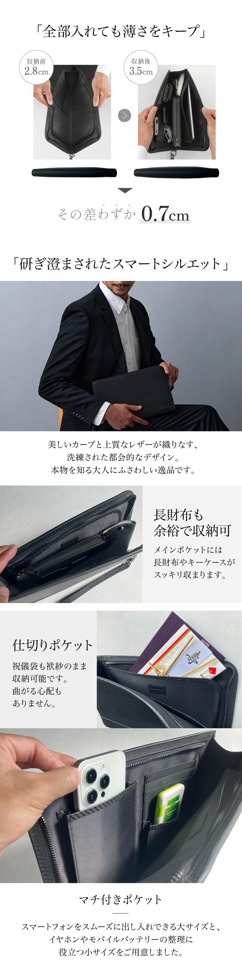 ■祝儀袋も長財布もすっきり収まる、大人のための本革クラッチバッグ。