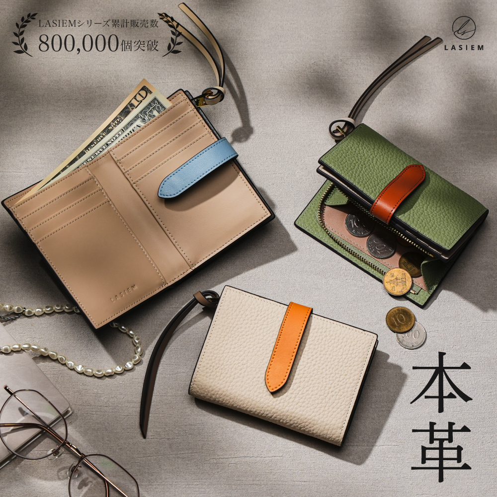 二つ折り財布 レディース 本革 ミニ財布 小さい財布 コンパクト 大容量 30代 40代 50代 ラシエム