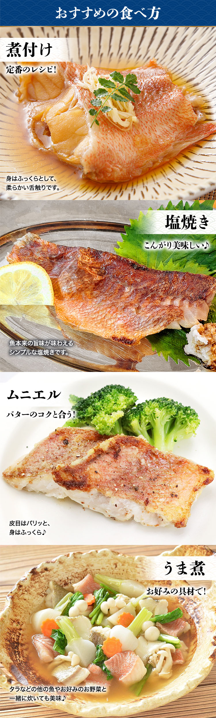 クセがない淡白な味わいなので、煮つけや焼き魚、揚げ物はもちろん、