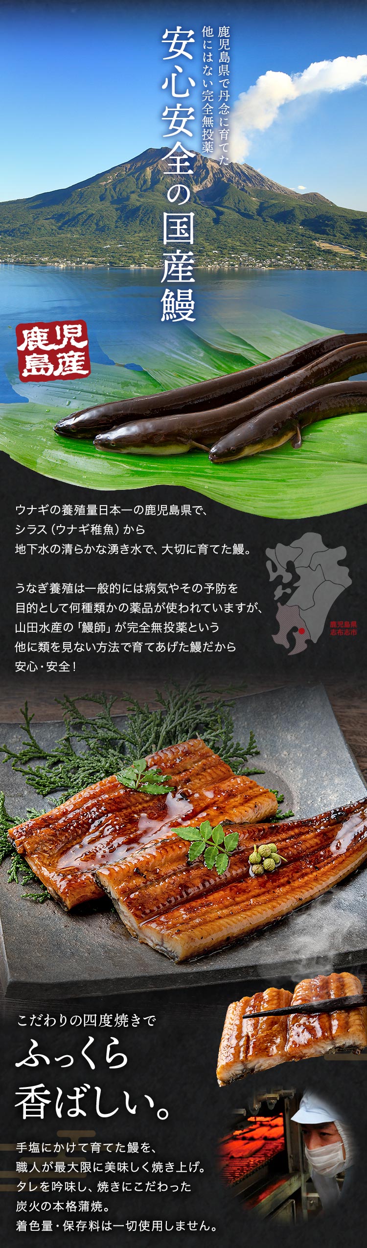 完全無投薬という、他に類を見ない養殖方法で育ったうなぎだから安心・安全!