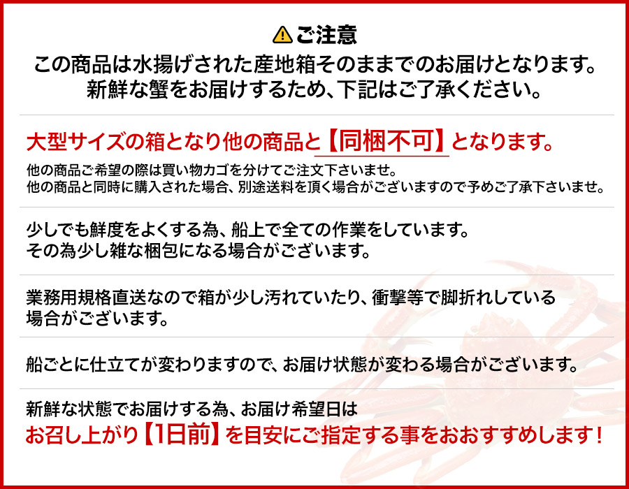 身入りもボリュームも大満足間違いなしのずわい蟹です。