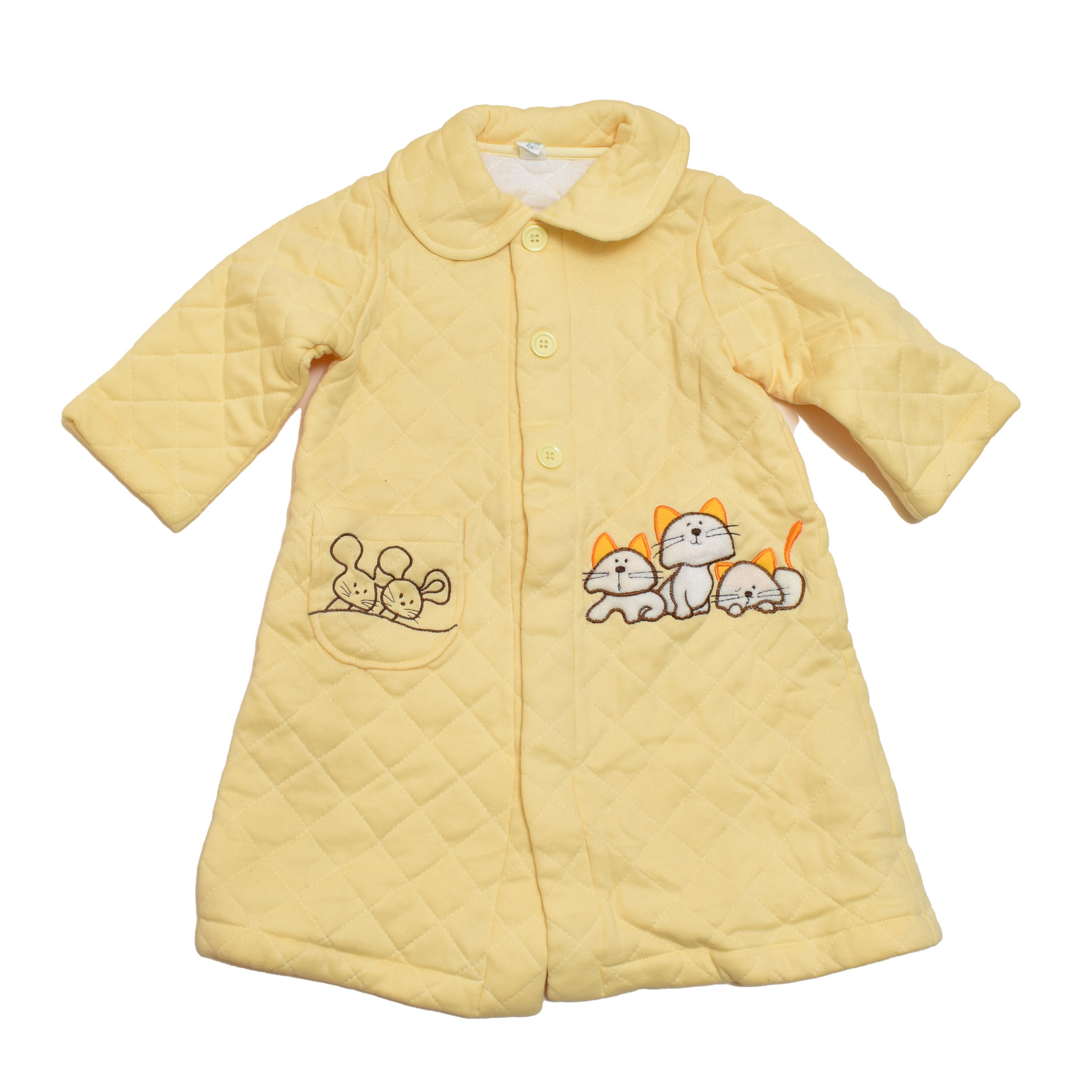 レトロ おとぎの国のキルト生地 ガウン イエロー 2才/3才 ネコ (2512-7755)
