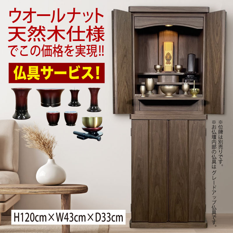 天然杢 人気仏壇入荷 仏壇 仏具付き ウオールナット仕様 小さい コンパクト 小型 ミニ おしゃれ モダン仏壇 スピッチ台付き ダーク色 全宗派対応