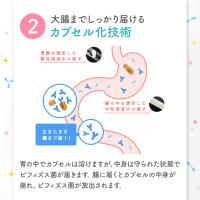 【原材料名】ビフィズス菌末(澱粉、ビフィズス菌乾燥原末)(国内製造)、乳蛋白質消化物、澱粉/HPMC、アルギン酸Na、ステアリン酸Ca、カラメル色素、炭酸Ca、リン酸Ca、葉酸、(一部に乳成分を含む)