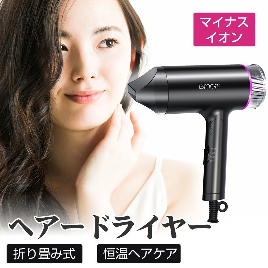 ヘアードライヤー 57℃恒温 3分速乾 ヘアケア 大風量 パワフル 風温三段階調節 冷熱風 マイナスイオン 3段階調整可能 1年安心保証 折畳み式 低騒音 家庭用 旅行