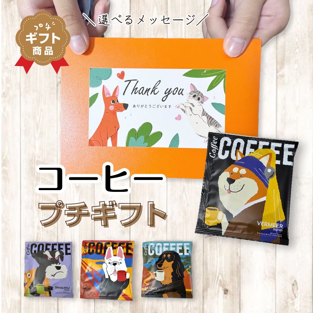 選べるメッセージ コーヒープチギフト 退職 挨拶 お返し ありがとう 犬 おしゃれ 高見え かわいい 内祝い 500円 1000円