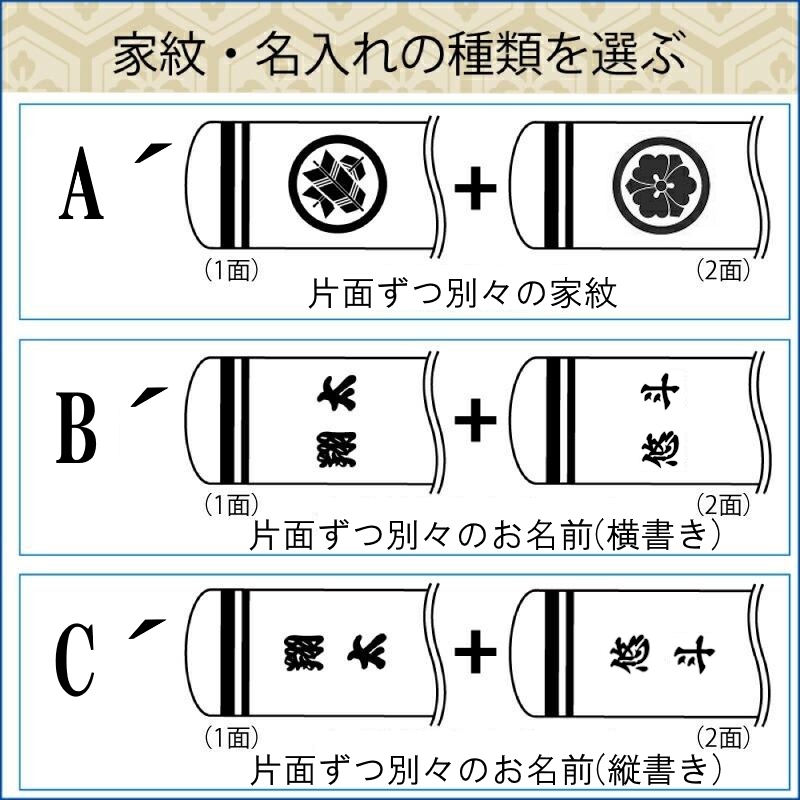 ※家紋またはお名前を、備考欄にご記入下さい。