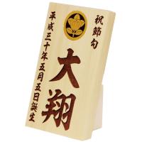 | レーザー彫刻名入れ木札 一口メモ | 美しい天然木にお名前、生年月日をレーザーでひとつひとつ丁寧にいれます。家紋は金属調家紋を埋め込みますので、豪華で素敵な木札です。 お誕生の記念やお祝いに大変喜ばれています。
