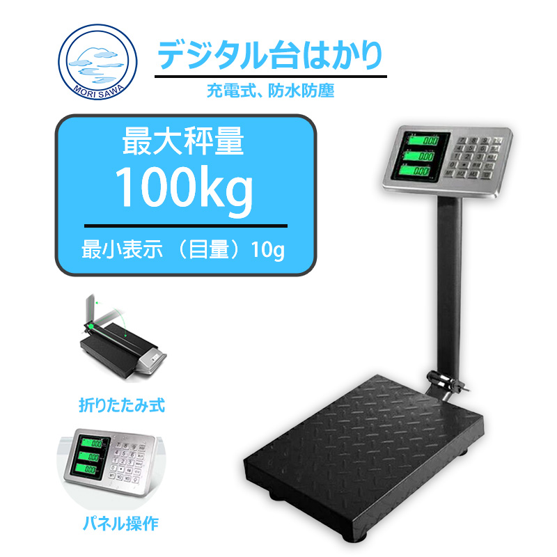 台はかり 100kg デジタル台はかり 電子スケール 台秤 バッテリー内蔵 充電式 折りたたみ式 PL保険加入済 目量10g 計量器 高精度センサー 大容量電池 長時間