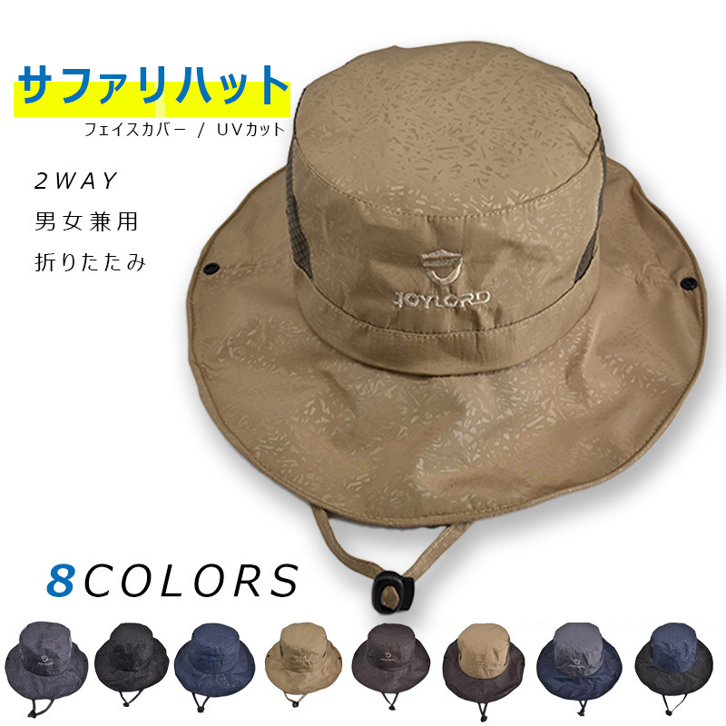 登山 帽子 サファリハット 通気性 折りたたみ つば広 軽い 男女兼用 調整可能 両用タイプ フェイスカバー UVカット アウトドア 暑さ対策