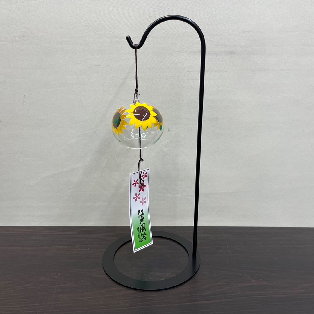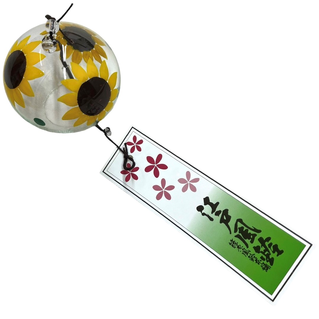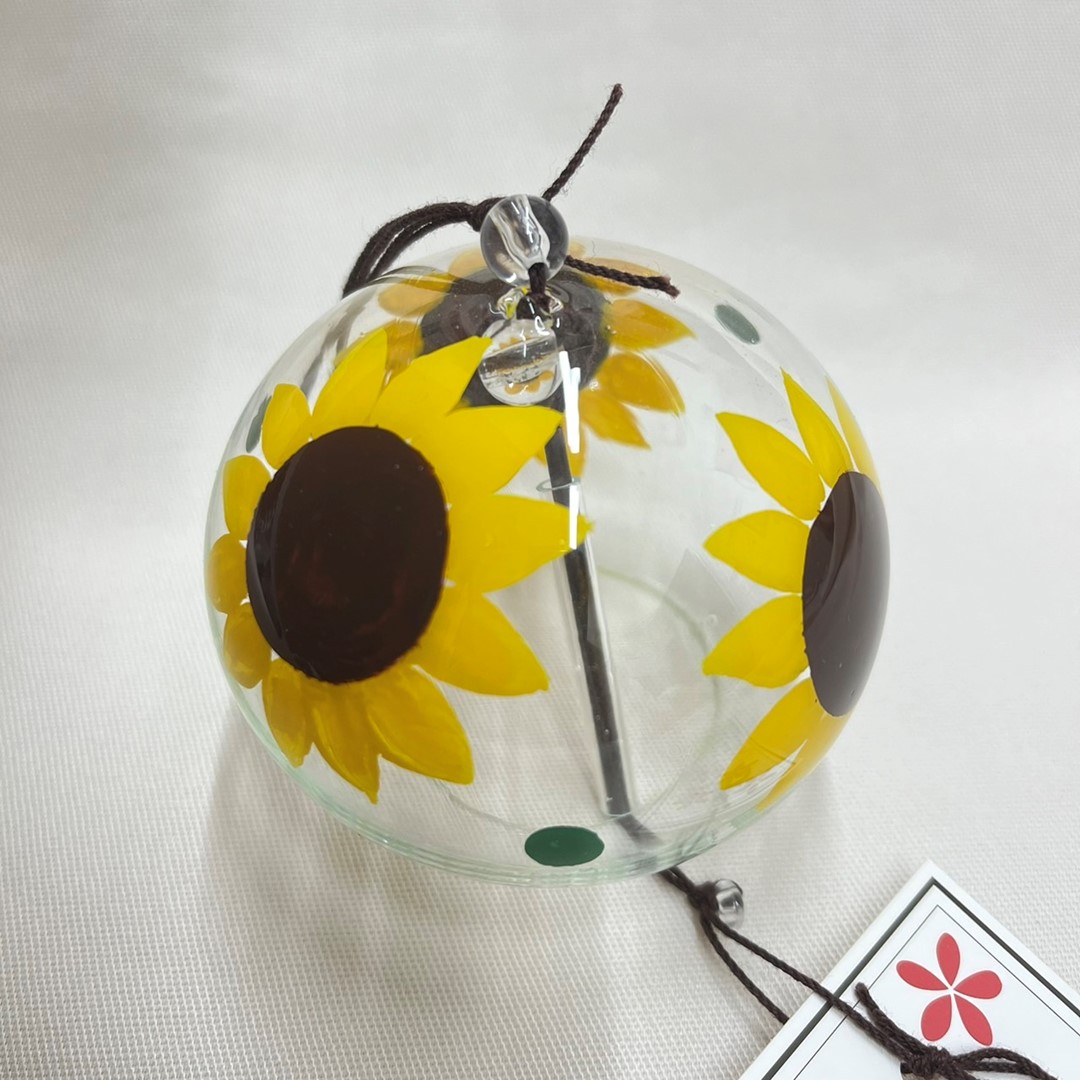 江戸風鈴 風鈴 ガラス 手描き イラスト 小丸 ひまわり 化粧箱付き