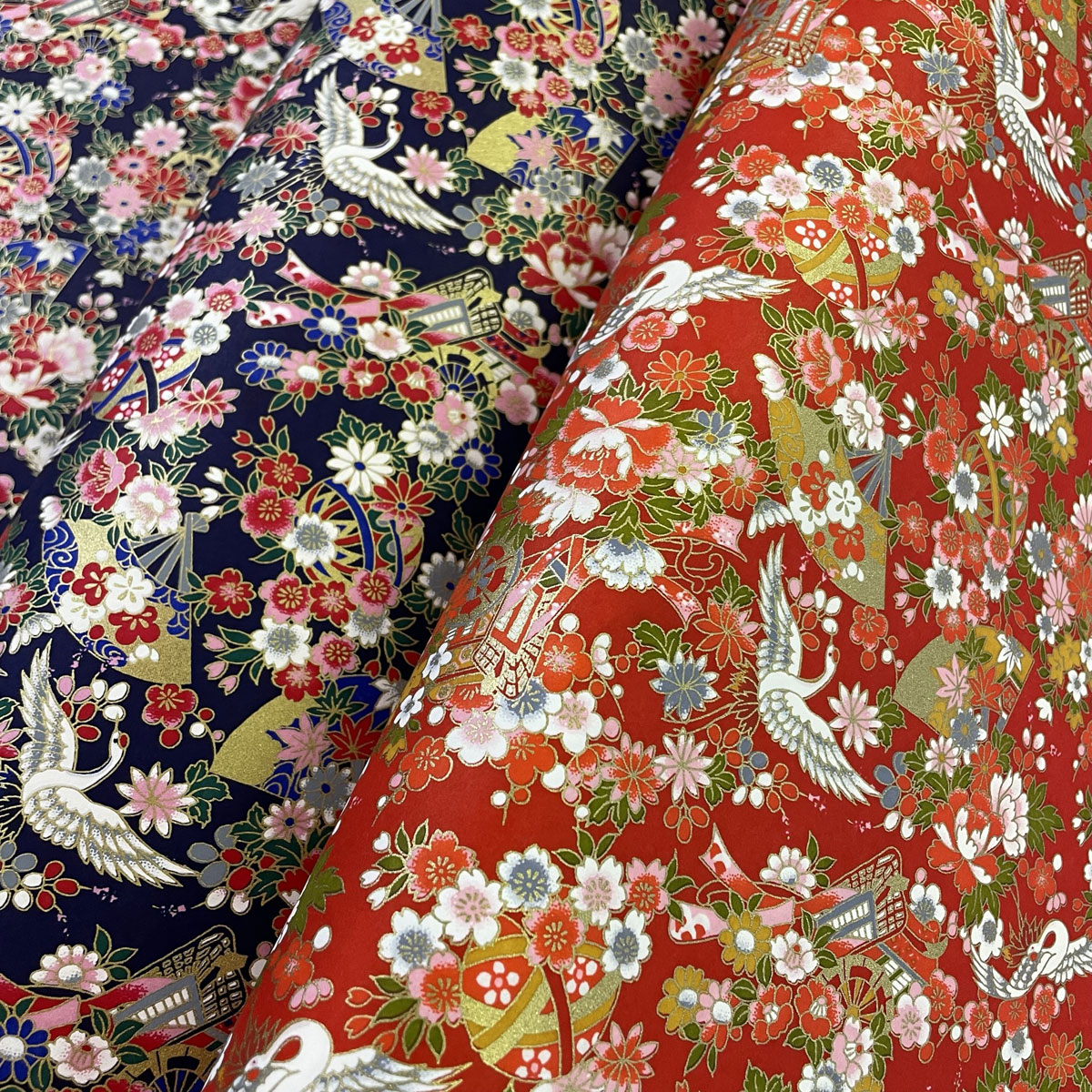 友禅和紙 豪華 鶴と扇 御所車 古典柄 牡丹 桜 青 赤 大判 菊判 約63x93cm 千代紙