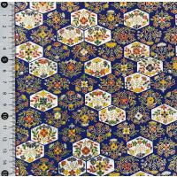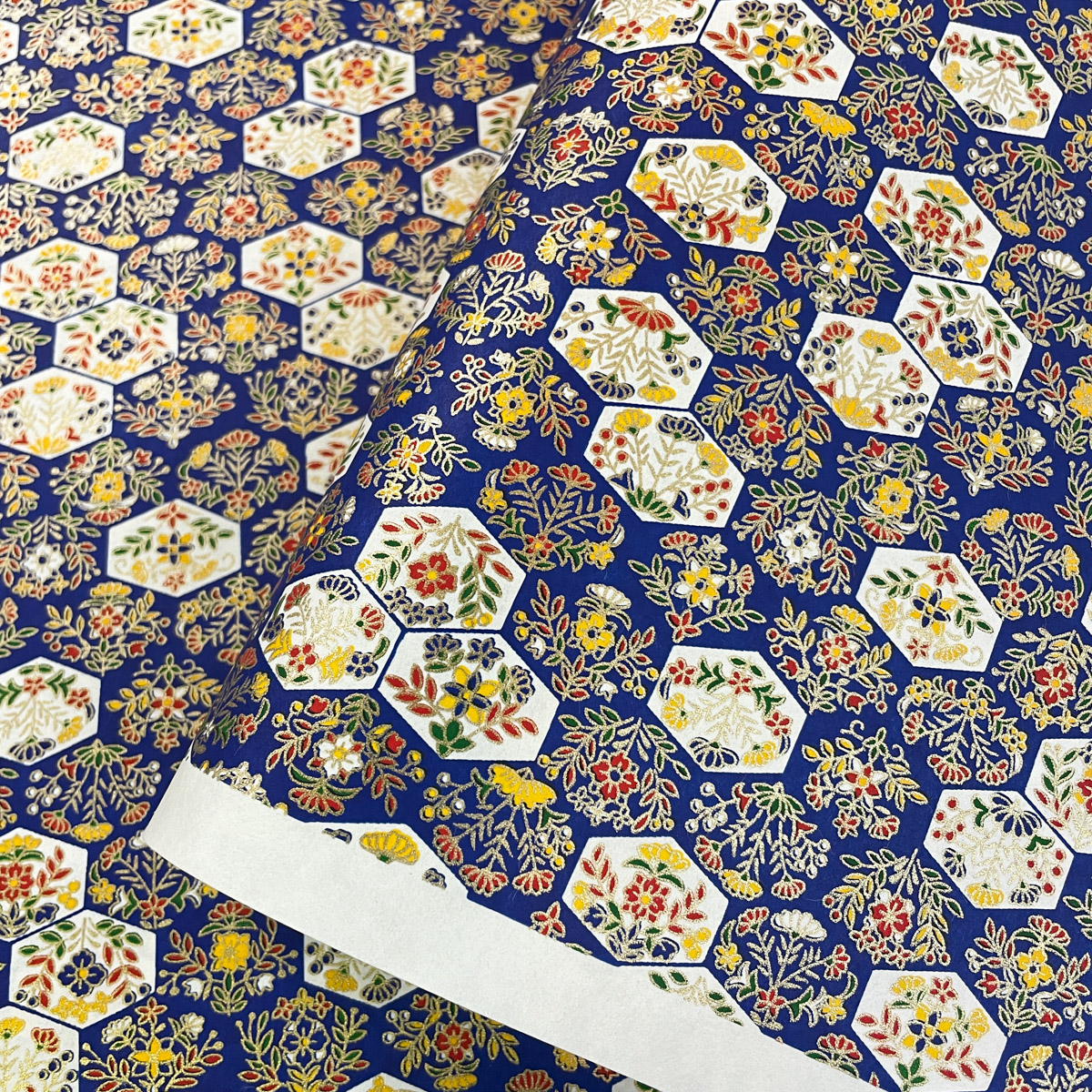 友禅和紙 六角花紋 小花 青 紺 大判 約63x93cm 千代紙