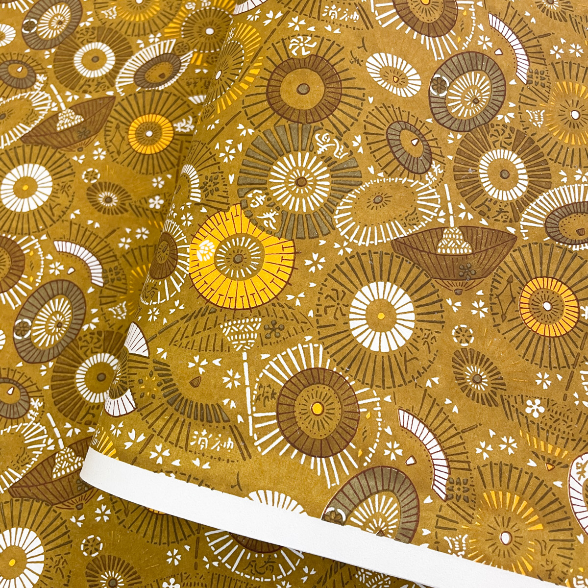華やかな友禅紙 小粋な和傘 茶系 黄土色 黄色 大判 約63x93cm 千代紙