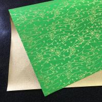 加賀友禅紙は着物の紋様や柄を色無地に金でプリントした和紙で、その裏面が金の無地になっています。