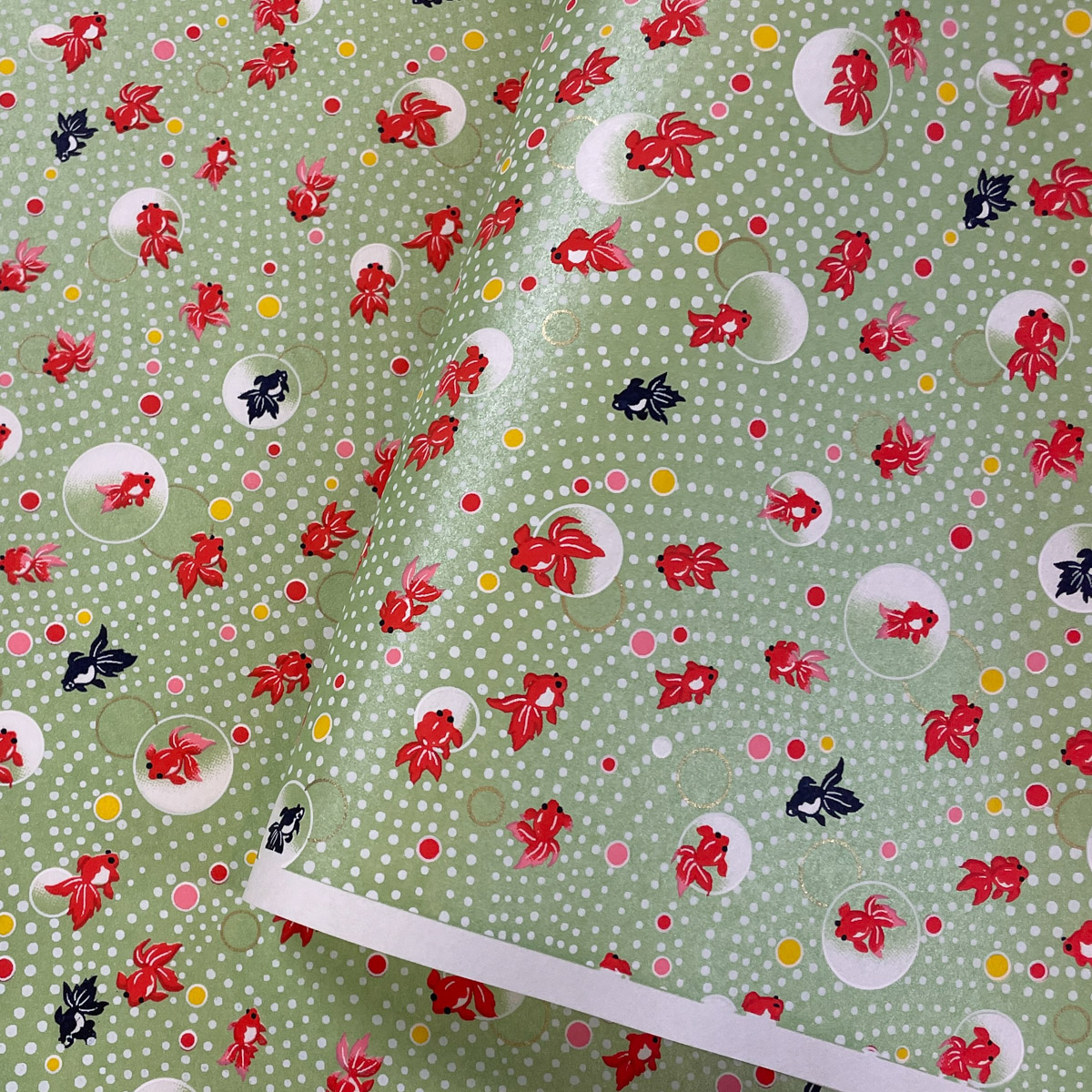 友禅和紙 可愛い水玉と金魚 パールグリーン 淡い緑色 大判 約63x93 cm 千代紙