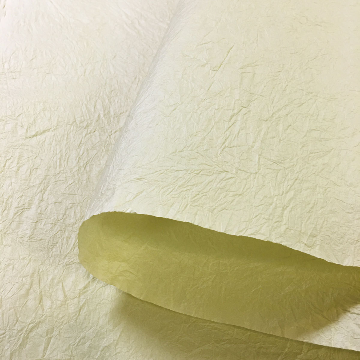 揉み加工によって布に近い柔らかな手触りになっています。また紙自体に強度があり破れにくくなっています。