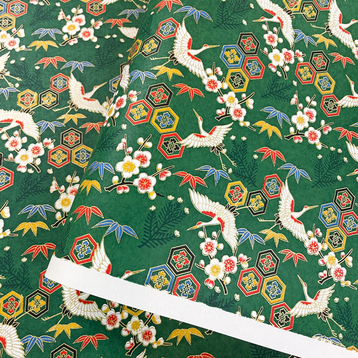 友禅和紙 豪華 鶴と亀甲花菱 梅 竹 緑 大判 約63x93cm 千代紙