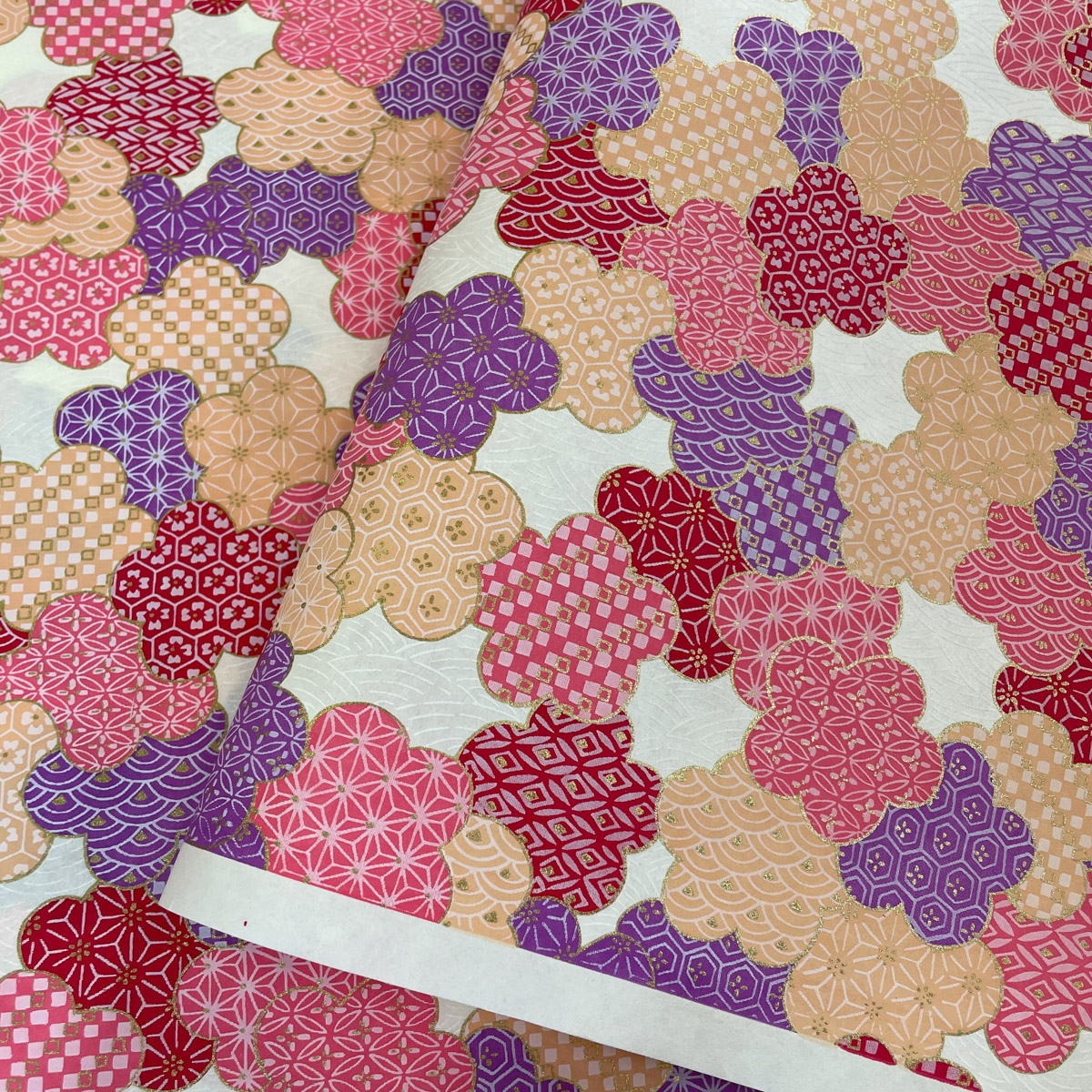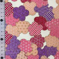 友禅和紙 大きな梅の花 麻の葉 亀甲 青海波紋様 ピンク 藤色 赤 大判 約63x93cm 千代紙