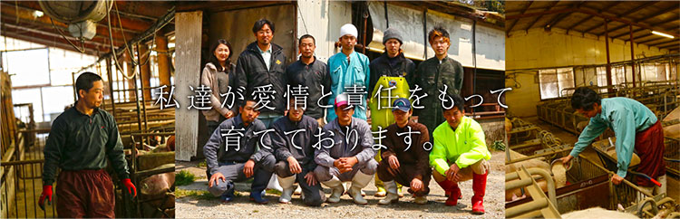 「美味しさだけでなく安心・安全もお届けします」常時1万2千頭という高知県最大規模の養豚農場を経営し、スタッフの平均年齢は30代半ばと若いですが、安全な豚肉をお届けしたく愛情と責任を持って育てています。