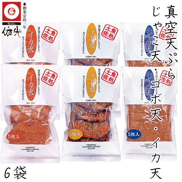 | 内容量 | ジャコ天(5枚入り)×2袋 ゴボ天(5枚入り)×2袋 イカ天(5枚入り)×2袋 |